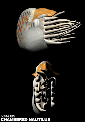 The Nautilis does not live as deep as the earlier animals I have chosen to model, this will give me the chance to model some of its environment, i.e coral etc.